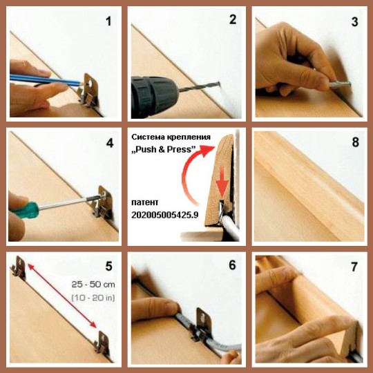 Повторная установка и удаление или замена плинтусов без применения каких-либо инструментов.