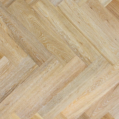 В паркете Дуб белёный используется отборная древесина дуба - рисунок распила ровный и спокойный. При этом чтобы придать текстуре дуба еще более интересный вид состаренного покрытия, поверхность брашируется, а поры тонируются белым маслом