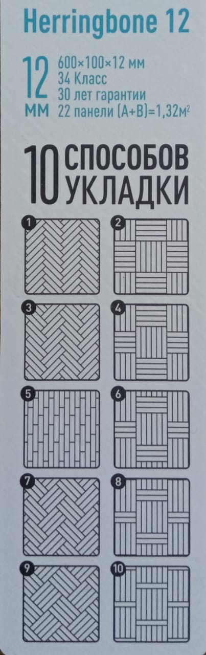 600*100*12 мм (1.32 кв.м./22шт. (11А+11В)/упак.)