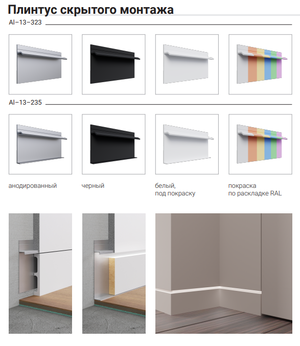 НазваниеСкрытый Плинтус AlPro13 - 235, анодированный 2,7 м.