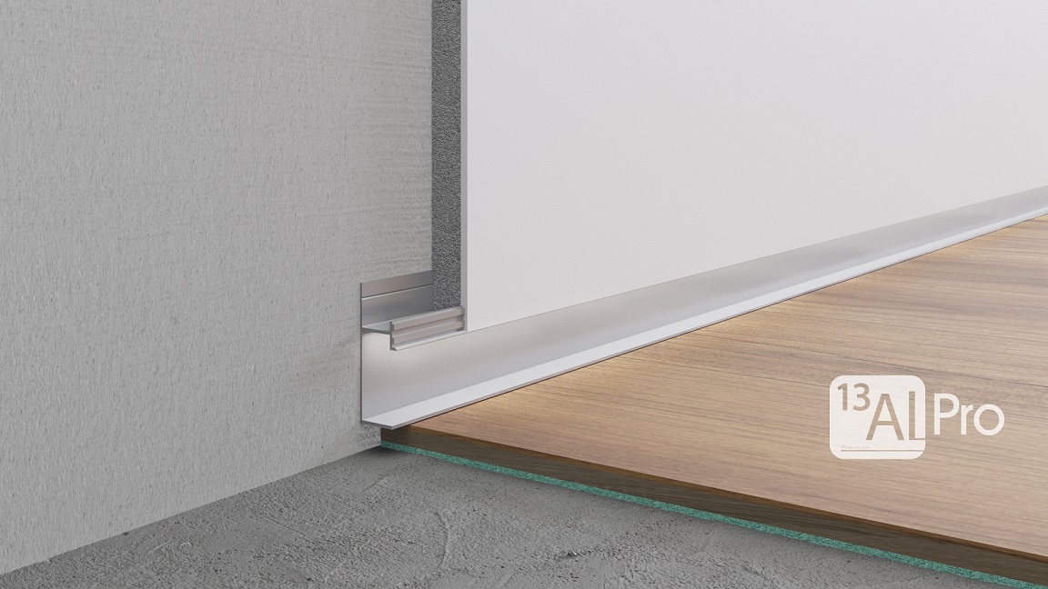 AluminiumPro Теневой плинтус скрытого монтажа AlPro13-7210 с нижней полкой Анодированный (под подсветку) 2.7 м.