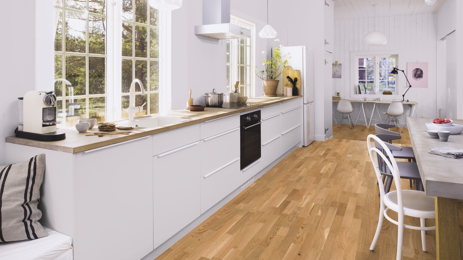 Трёхполосная паркетная доска дуб Finale,без фаски, покрытие масло Live Natural