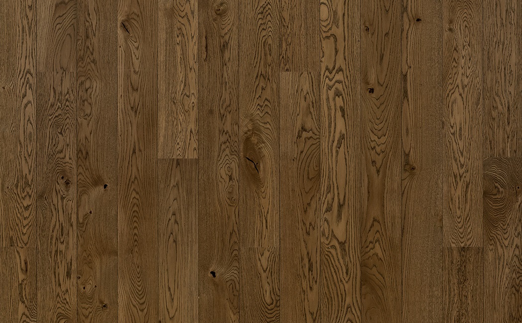 Легко брашированная однополосная доска из дуба сортировки Кантри, покрыта коричневым маслом.