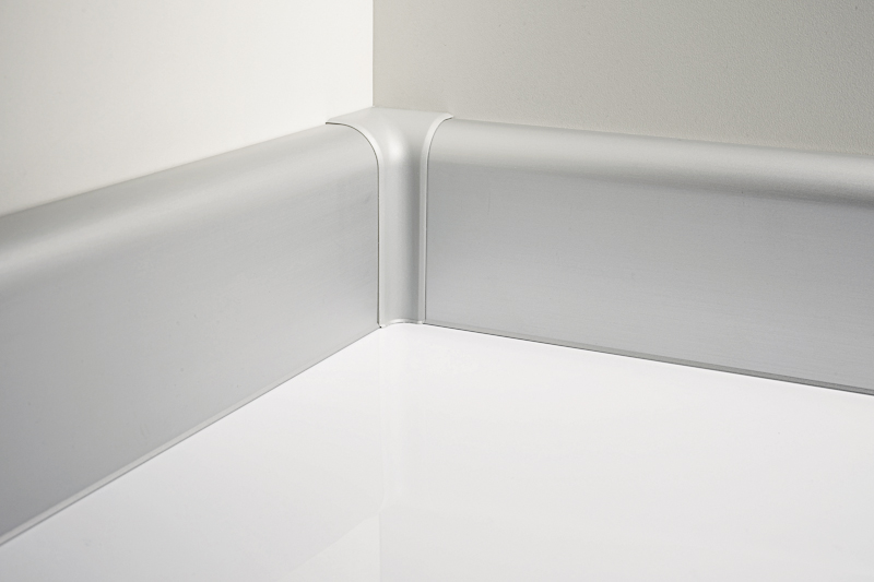 К плинтусу выпускаются все стыковочные элементы: углы, стыки и заглушки, из полипропилена и из натурального алюминия, которые придают отделке однородность и линейность.