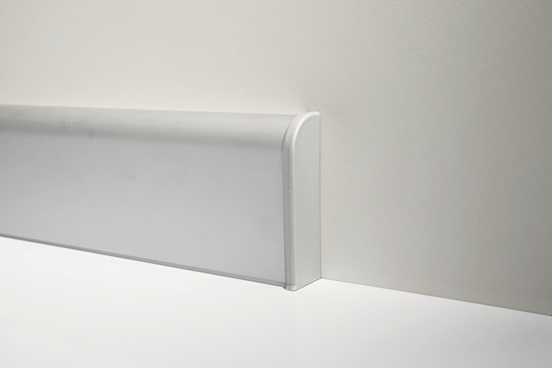 Этот металлический плинтус относится к премиальной линейке плинтусов, изготавливается из анодированного алюминия. Плинтус имеет зазор для кабель-канала.