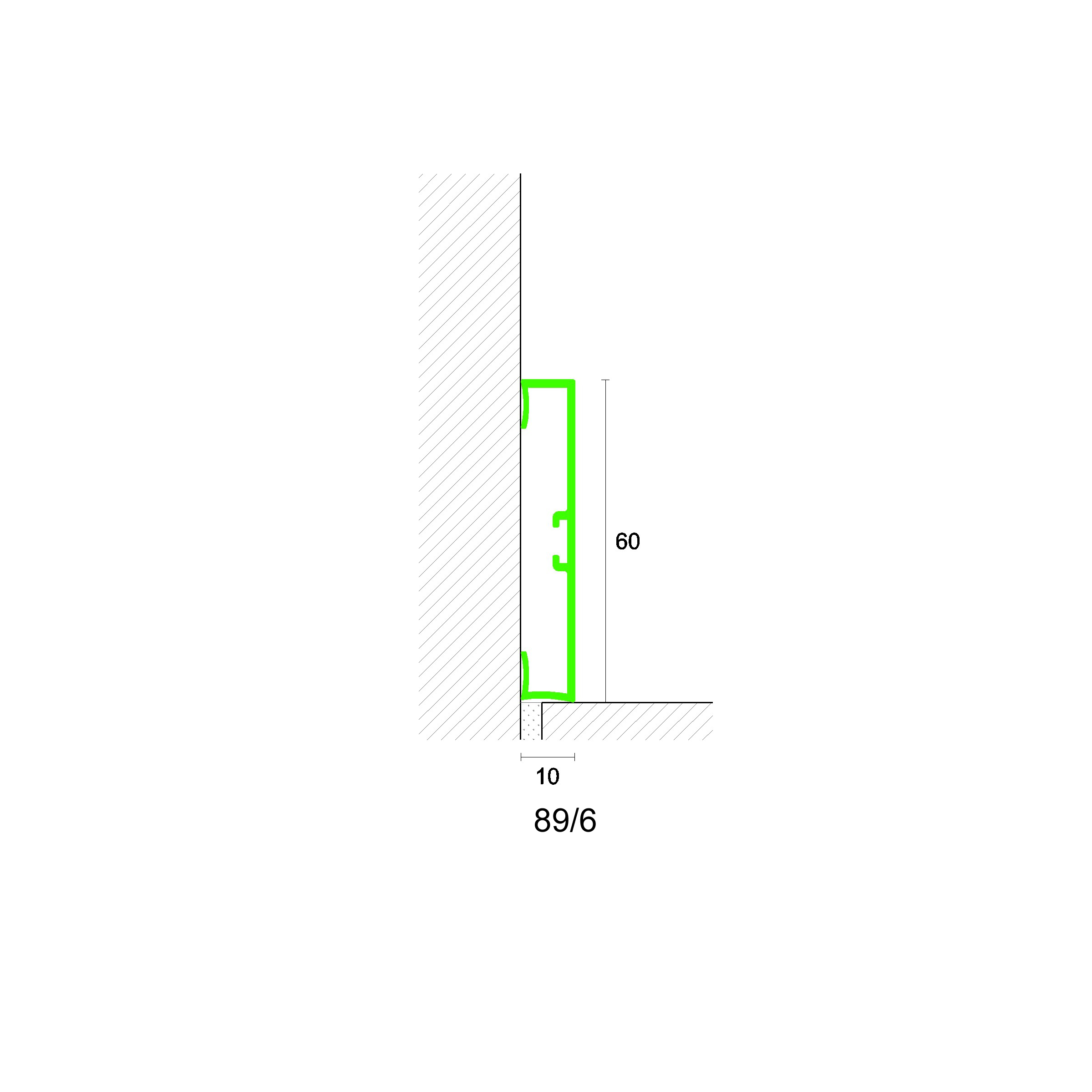 Metal Line 89 - изготовленный из анодированного алюминия, имеет несколько видов отделки поверхностей. Это прямоугольный плинтус высотой 6 см, который очерчивает пространство элегантно и сдержанно. Крепится к стене с помощью соответствующего клея или шурупами. Помимо декоративной функции, он полностью соответствует техническим требованиям для плавающих полов, позволяя скрыть необходимый зазор по периметру.плинтус, изготовленный из анодированного алюминия, имеет различную высоту и различные отделки поверхности. Этот плинтус, созданный в духе минимализма, позволяет создать четкое и стильное соединение между стеной и полом. Благодаря своему выступающему краю, он обеспечивает идеальное закрытие периметрической зоны, это особенно полезно для расширяющихся полов, закрывая минимальные промежутки расширения.